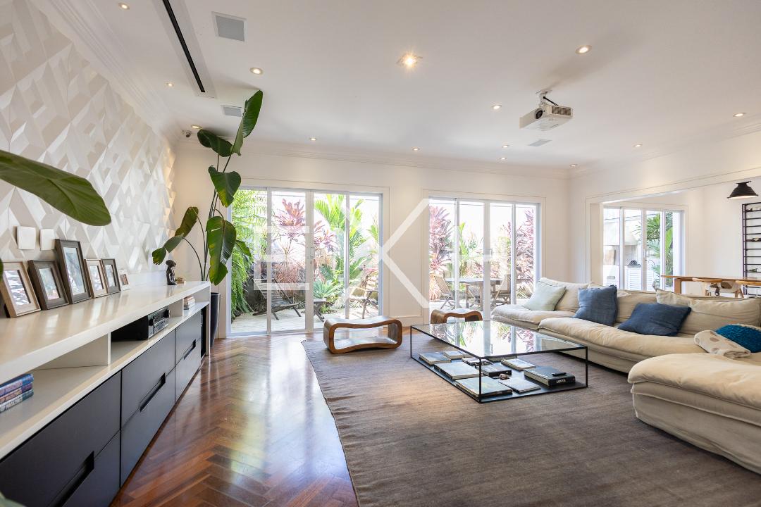 Possui entrada social que dá acesso ao escritório e lavabo, ampla sala de jantar e a sala de estar com pé direito duplo, home theater, área de serviço e dependência de empregados com entrada independente.